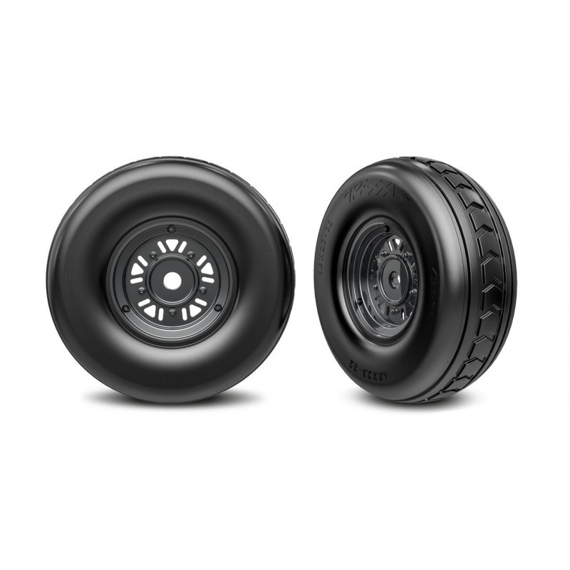 Traxxas 10972-BLKC Dual profile tires on black chrome front wheels (3.2" external, 4.9" internal) (2)