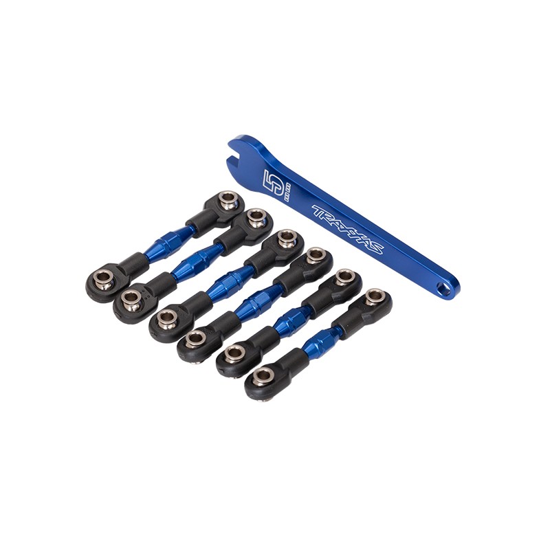Traxxas 8341X Set of Blue aluminum tie rods camber 32mm front (2) and 28mm rear (2) / Toe 34mm (2) + key
