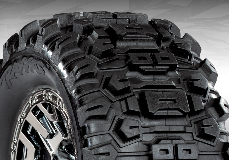 Stampede 4X4 VXL relies on huge Sledgehammer tires to put its massive torque to the ground. The 5.3″ tall Sledgehammers lift Stampede skyward for superior ground clearance and a menacing stance. The open-block tread design clears away mud and debris for unrivaled traction on loose surfaces. Sledgehammer tires come pre-glued with performance foam inserts and they’re TSM®-rated for speeds of 60 mph and beyond!