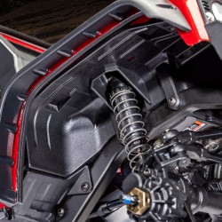 The scale details did not stop with the body. We went underneath to install detailed inner fenders that integrate with the scale look of the floor pans and shock towers, keeping rocks, mud, and twigs out of the chassis. The inner fenders are also equipped with pockets to install our optional LED rock light kit (sold separately) to light up the night trail, casting light right where it’s needed. The rock lights make changing a “flat tire” on the trail a breeze! ;-) Integrated rock sliders help protect the body from damage.