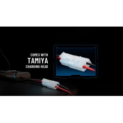 L'UN3 viene fornito con un cavo di uscita integrato dotato di connettore Tamiya standard, rendendolo compatibile con la stragrande maggioranza delle auto RC, barche e avviatori che utilizzano pacchi NiMH. Con un peso di soli 50g, è l'accessorio perfetto da tenere sempre nella borsa degli attrezzi.