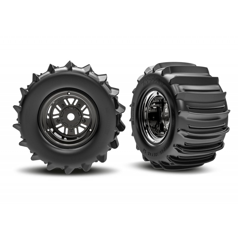 Traxxas 10973-BLKC Gomme Belted Paddle doppio profilo su cerchi cromati neri posteriori (3,6" esterno, 4,7" interno) (2)
