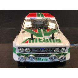 FIAT 131 RALLY carrozzeria trasparente in policarbonato Lexan 1mm con kit decals ALITALIA, + accessori in plastica.