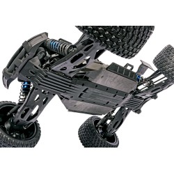 Il design del telaio incentrato sulle prestazioni di XRT è configurato per abbassare il baricentro per una maneggevolezza e stabilità superiori. Le doppie batterie 6700 4s e il servo dello sterzo sono posizionati per posizionare il peso il più basso possibile nel telaio e fornire protezione per questi componenti critici.