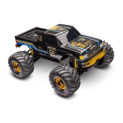 Carrozzeria Commemorativa Heavy-Duty: BIGFOOT 50th è Ready-To-Race® con una carrozzeria commemorativa heavy-duty, realizzata in policarbonato extra spesso da 2 mm. Paraurti e ruote color oro risaltano sulla brillante vernice nera, con un sistema di chiusura a scatto nascosto per linee pulite e una tenuta sicura. La carrozzeria è anche dotata di una gabbia di rinforzo a tutta lunghezza per la massima rigidità e resistenza.