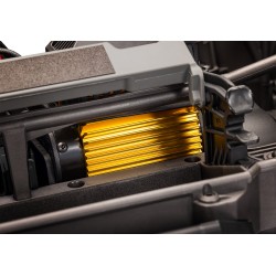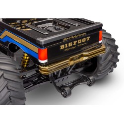 Finiture Esclusive Gold: BIGFOOT 50th include ammortizzatori, assi e dissipatore di calore del motore anodizzati in un esclusivo color oro. Anche i paraurti e le ruote ricevono una finitura dorata abbinata per un look unico. Persino l'ESC Velineon VXL-8s è stampato in plastica nera per abbinarsi al motore. Queste parti in edizione limitata sono disponibili solo su BIGFOOT 50th e non saranno vendute separatamente.