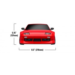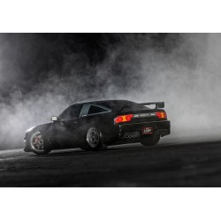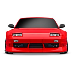 La carrozzeria senza clip (senza ganci esterni) alza l'asticella per durata, facilità d'uso e dettaglio estetico. La verniciatura lucida contrasta con i dettagli stampati per uno stile Nissan anni '80 mozzafiato. I supporti nascosti sotto il cofano e lo spoiler posteriore preservano le linee eleganti della 240SX mantenendo il corpo saldamente fissato al telaio.