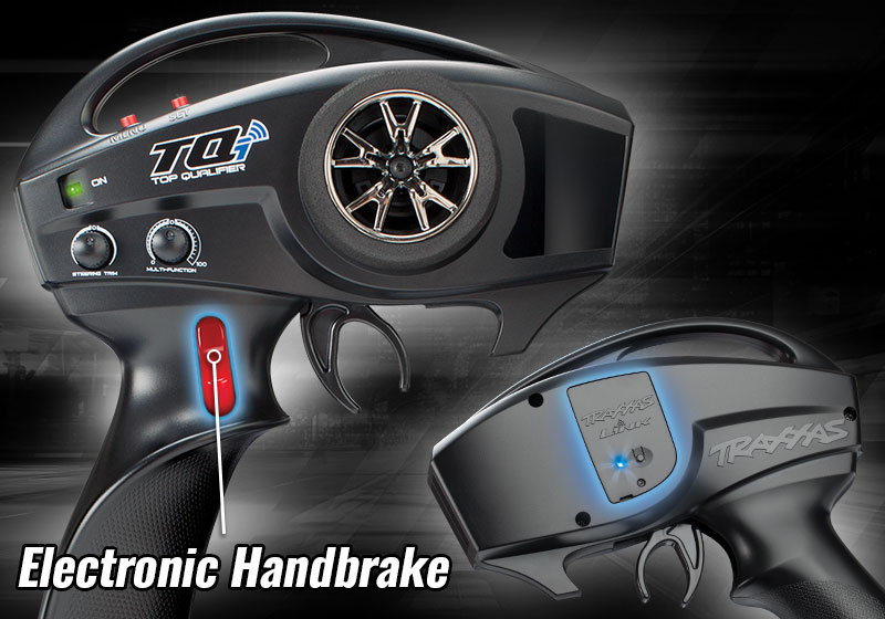 • Radio TQi con Modulo Wireless: Sfrutta tutto il potenziale del sistema Traxxas Link™. Usa il pulsante del freno a mano sulla radio per innescare la rotazione e iniziare il drift.